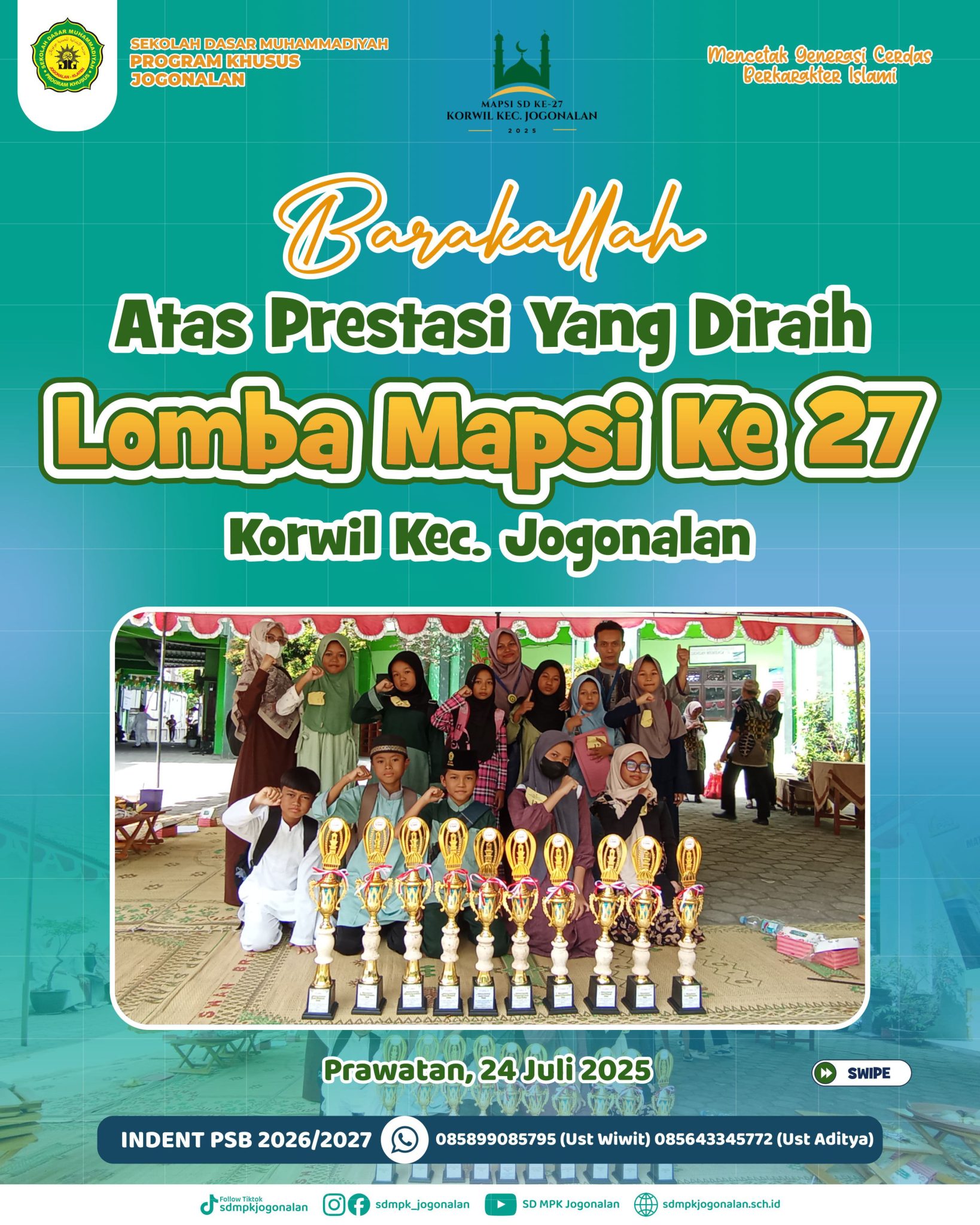 Alhamdulillah, pada hari Jum’at, 19 September 2025, SD MPK Jogonalan berkesempatan menerima tamu dari PPM MBS Yogyakarta. Kunjungan ini bertujuan untuk melaksanakan sosialisasi Penerimaan Santri Baru (PSB) PPM MBS Yogyakarta kepada para santri SD MPK Jogonalan. Dalam kesempatan ini, tim dari PPM MBS Yogyakarta menyampaikan informasi terkait profil sekolah, program pendidikan, serta tahapan pendaftaran calon santri baru. Harapannya, kegiatan ini dapat memberikan wawasan dan gambaran yang jelas bagi santri dalam menentukan jenjang pendidikan mereka di masa depan. Semoga kerja sama