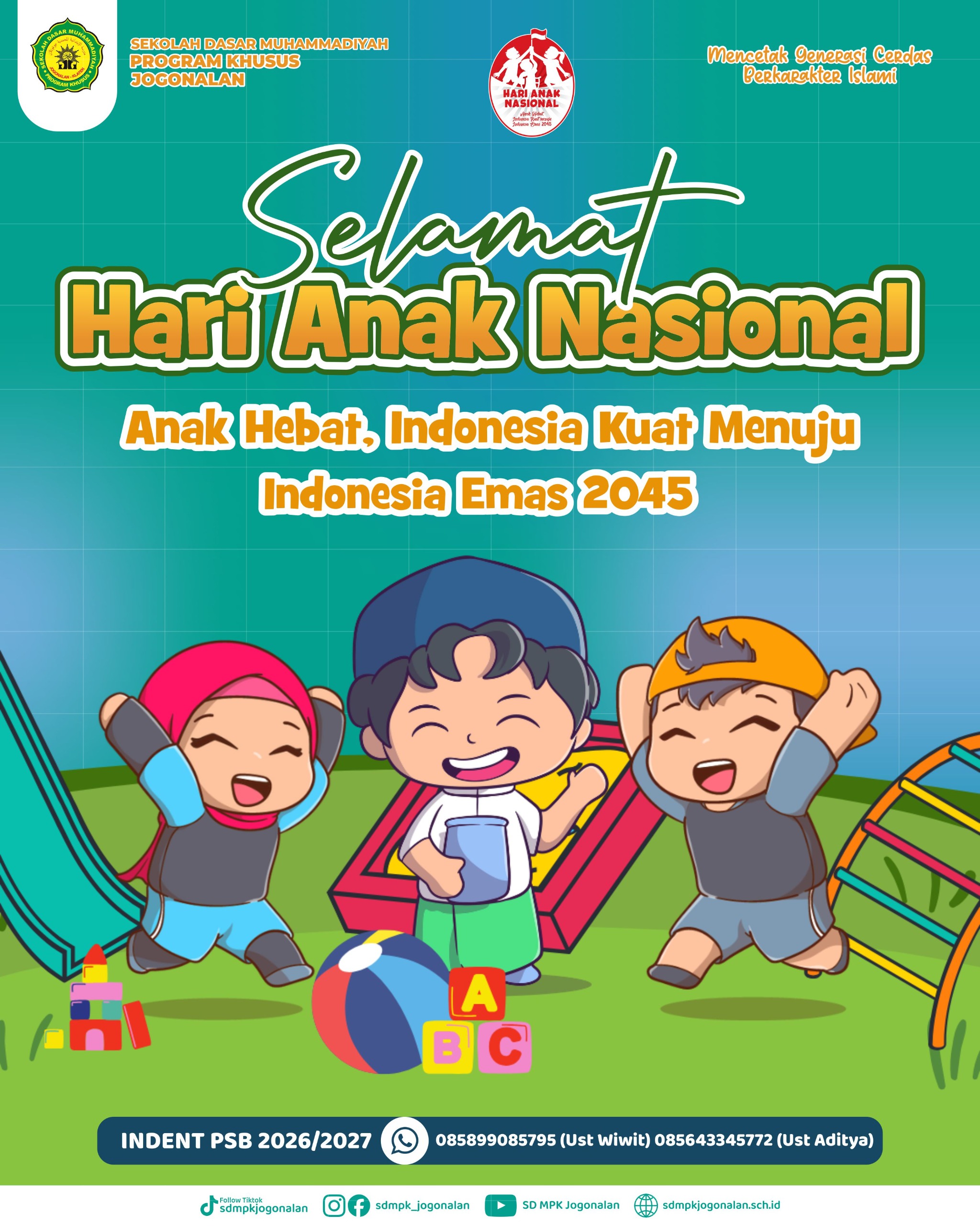 Dalam semangat Hari Anak Nasional, mari kita wujudkan lingkungan yang aman, ramah, dan penuh kasih untuk anak-anak Indonesia.