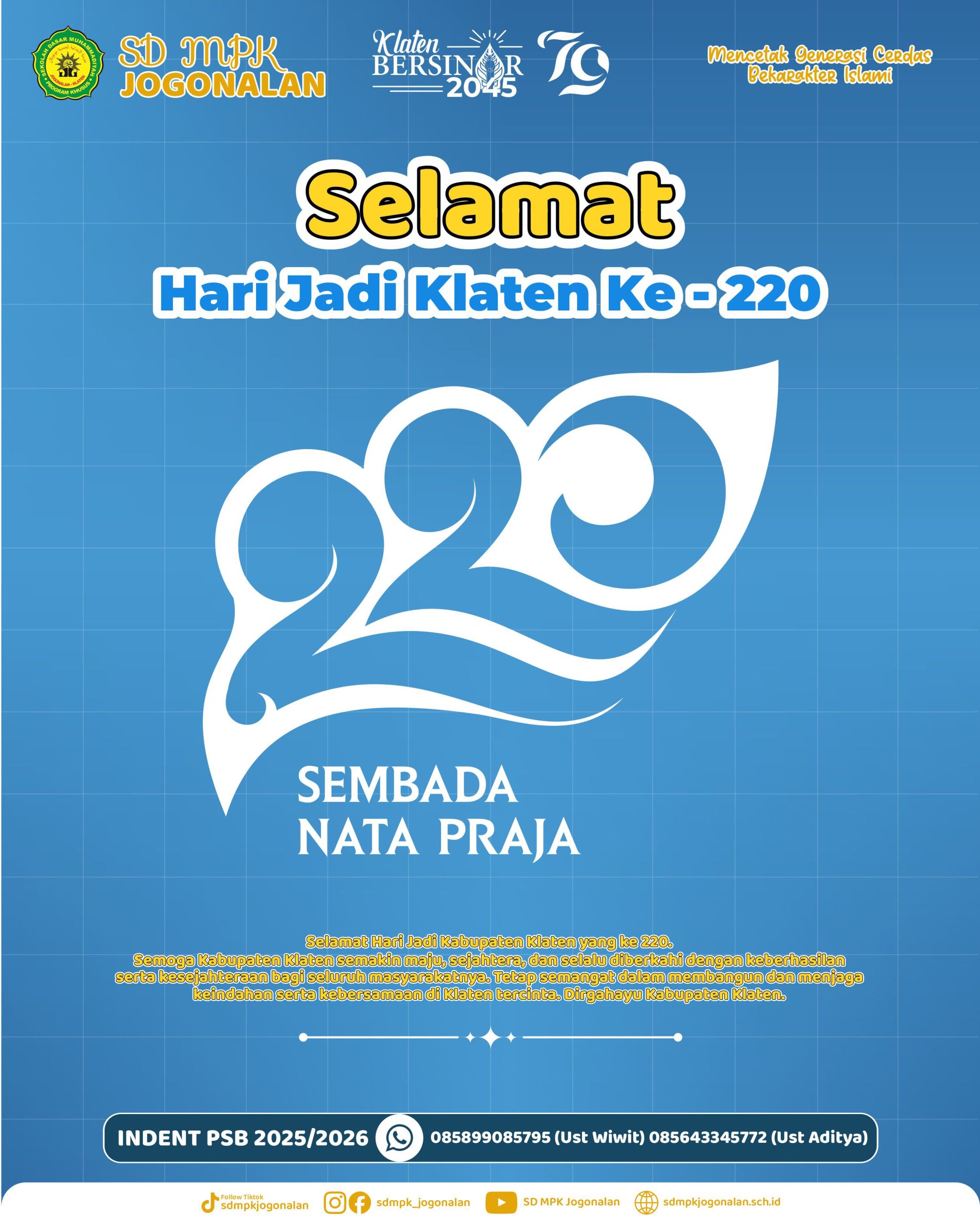 Selamat Hari Jadi Kabupaten Klaten yang ke 220.