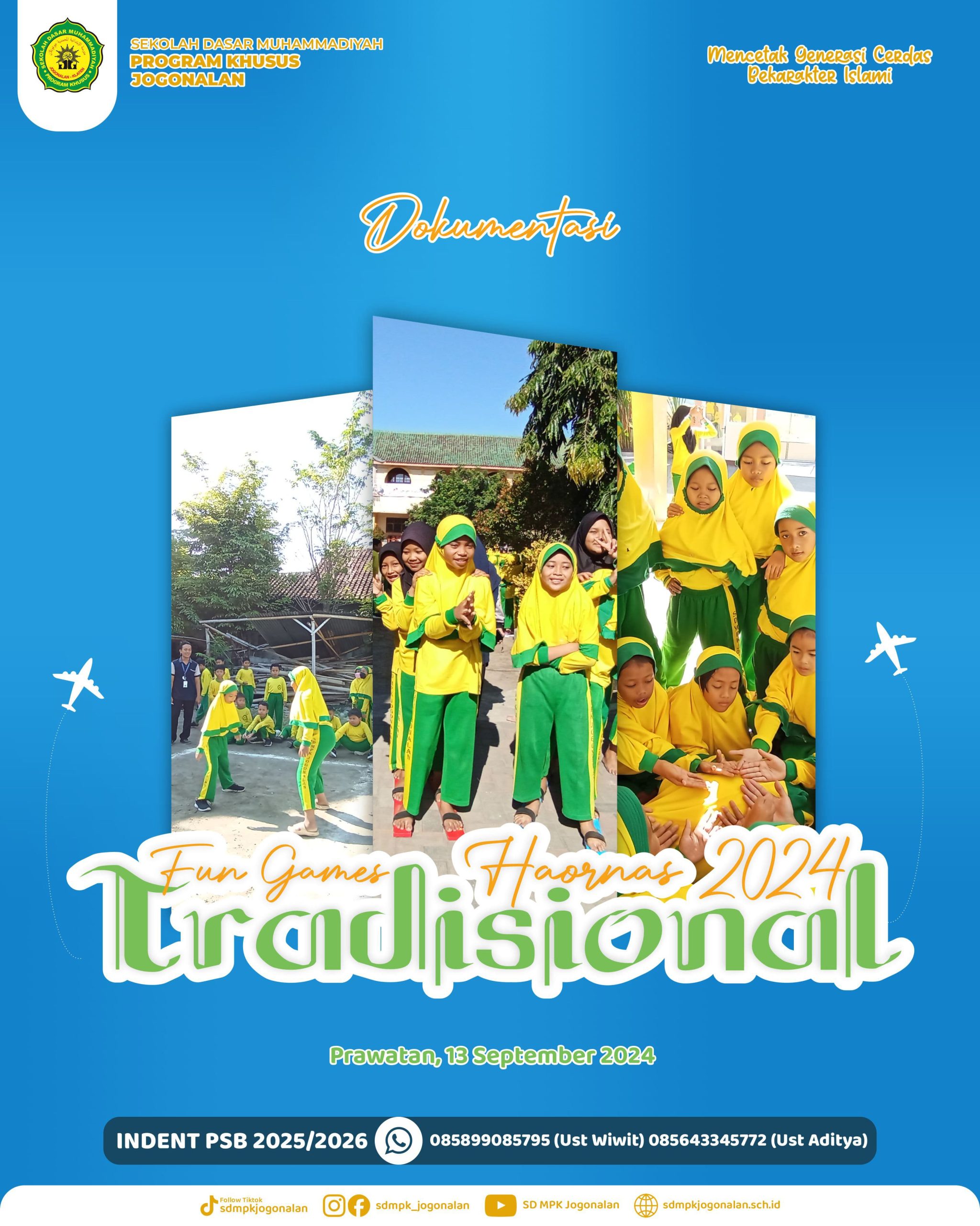 Jum’at, 13 September 2024 SD MPK Jogonalan mengadakan kegiatan Permainan Tradisional dalam rangka memperingati Hari Olahraga Nasional, diadakannya kegiatan tersebut bertujuan untuk mengenalkan berbagai macam permainan tradisisonal kepada anak-anak, yang mana permainan tersebut sudah jarang dimainkan oleh anak-anak zaman sekarang, dan masih banyak anak-anak belum mengetahui adanya permainan tersebut.